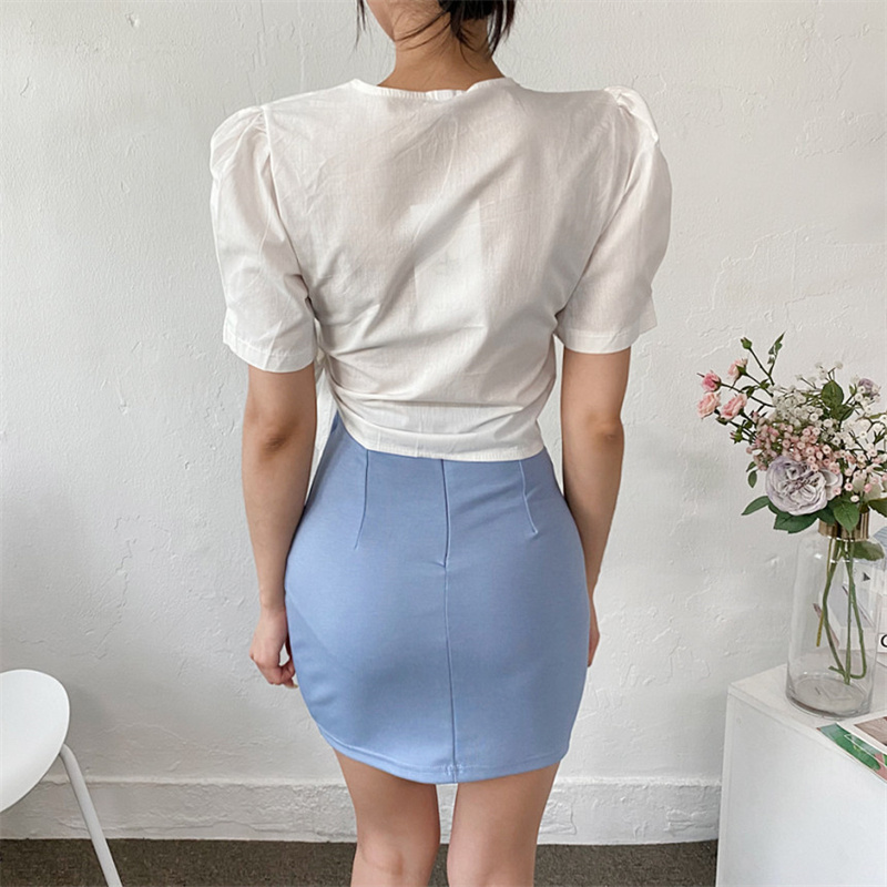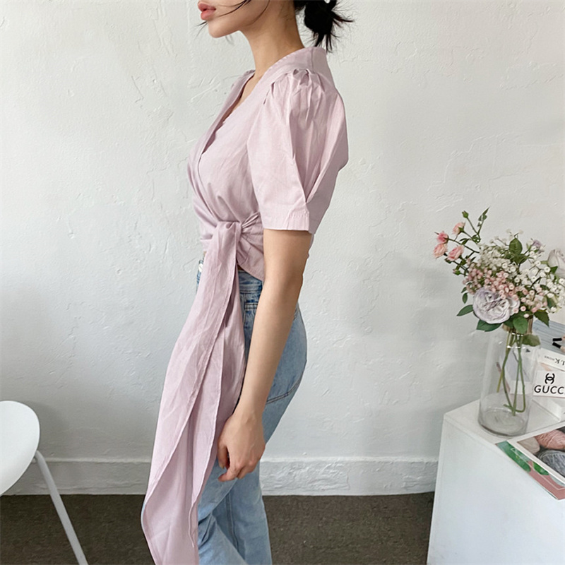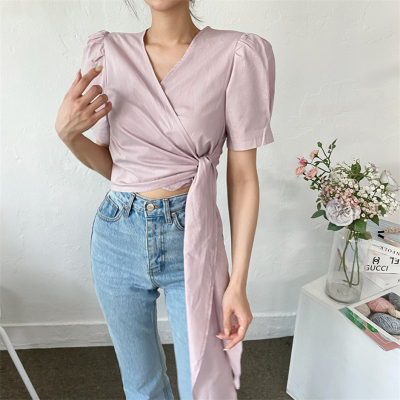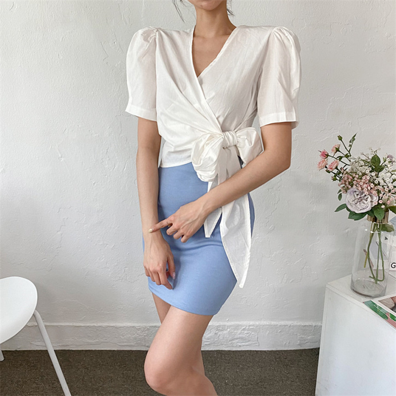 ウエスト部分の大きなリボンが女性らしさを演出し、深めのVネックでスタイリッシュに決まります。
