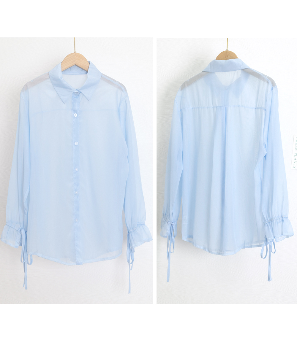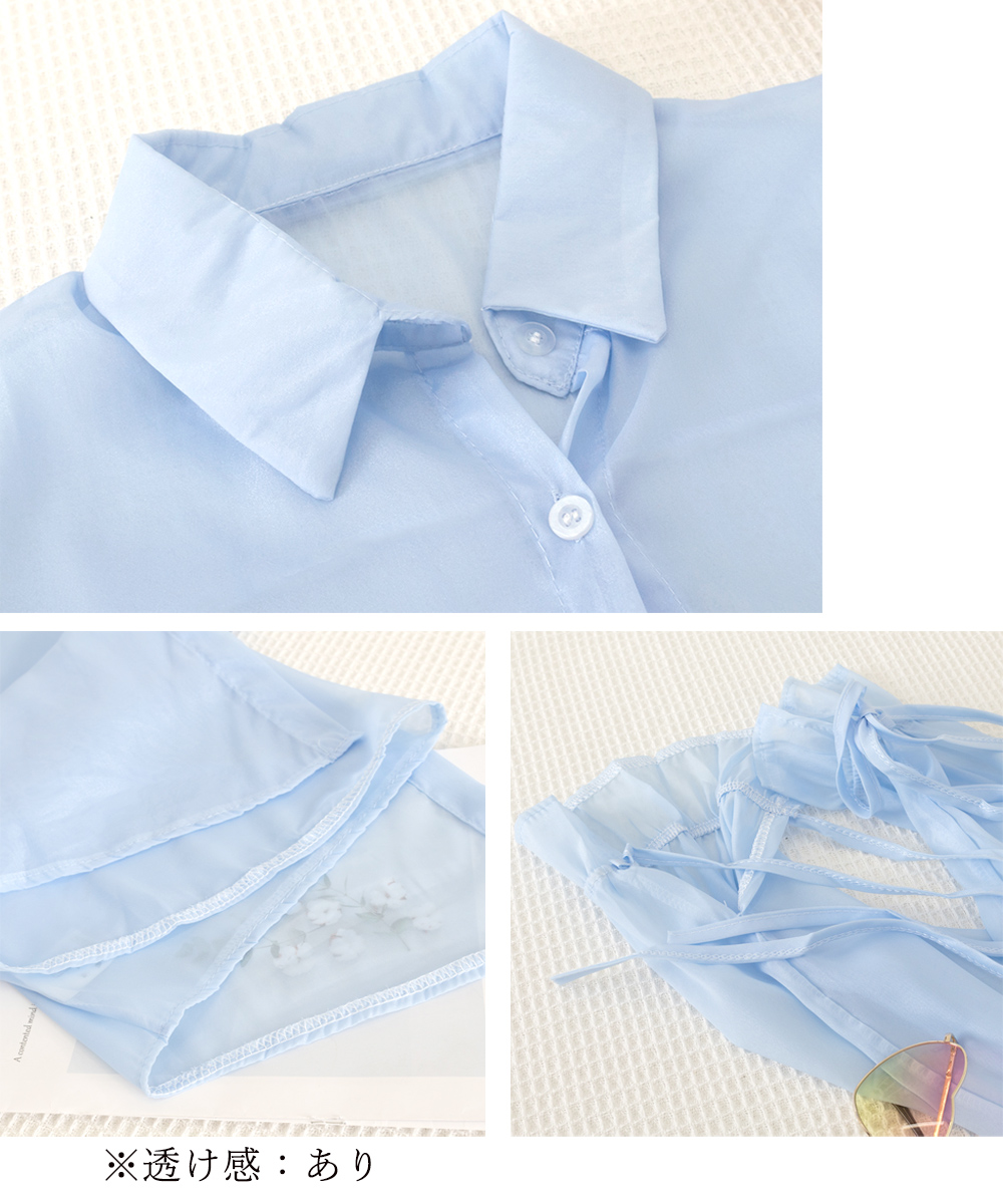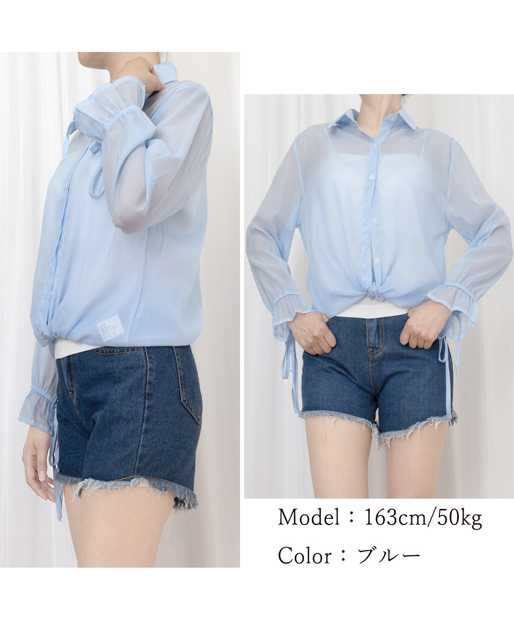 透け感のあるシアー生地が魅力の大人可愛いリボンブラウスです。