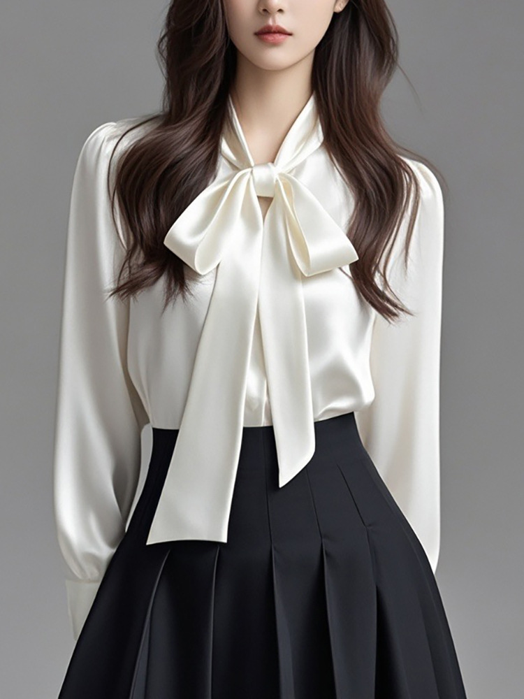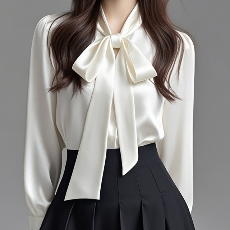 首元の華やかなビックリボンが印象的なリボンブラウスです。